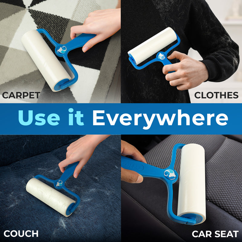 Strong adhesive effortlessly lifts pet hair, dust, and lint from furniture, clothing, and carpets.