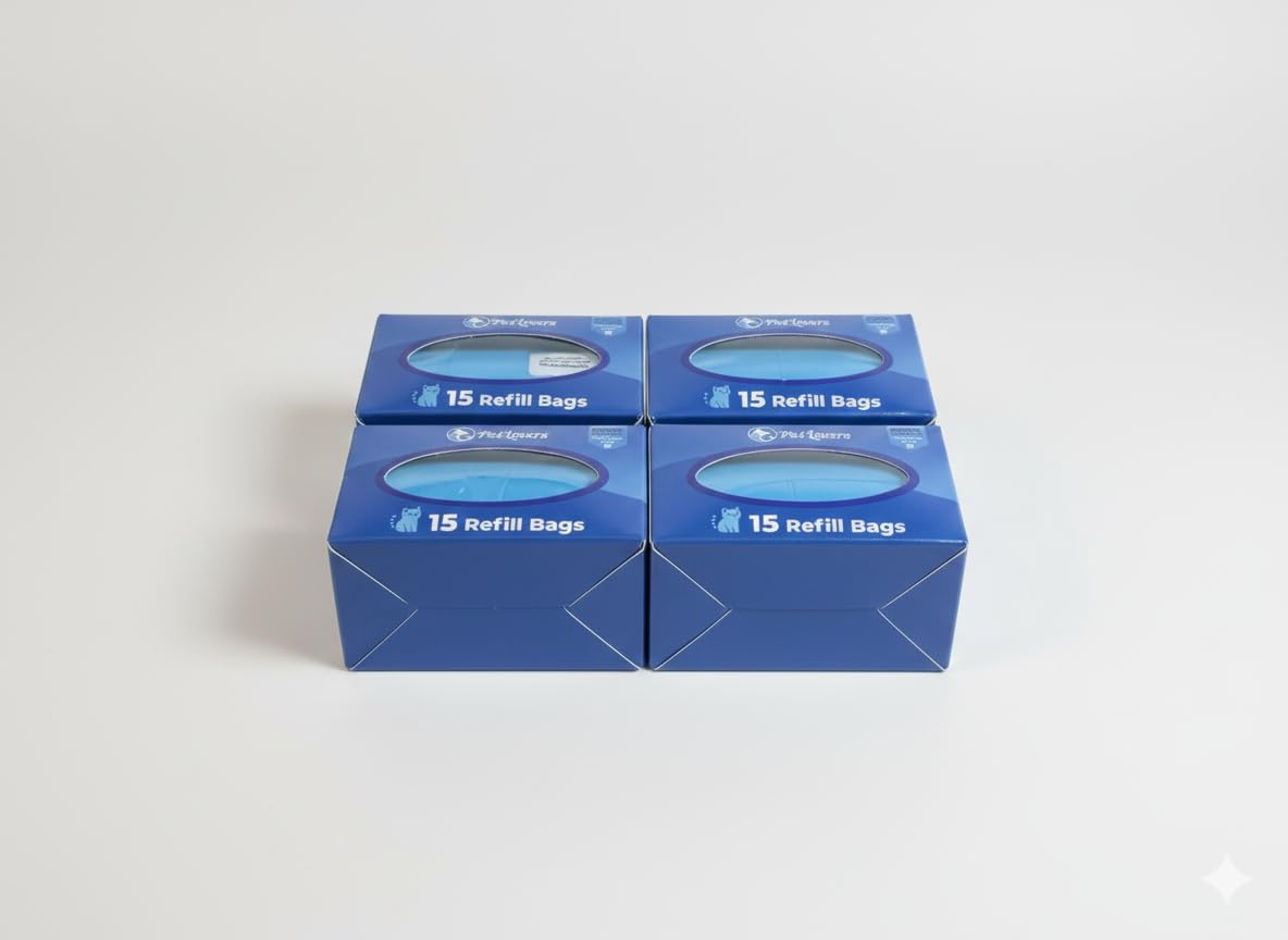 The box includes 60 fresh-scent odor-control bags designed to fit the built-in container. Ready to use right away, no separate purchase needed.
